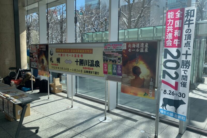 2月16~17日の2日間、札幌大通ビッセにおいて、(一社)音更町十勝川温泉観光協会様、北洋銀行様による十勝川温泉のPRと併せて、全共北海道大会のPRを行いました。