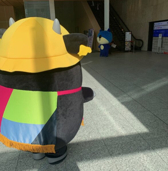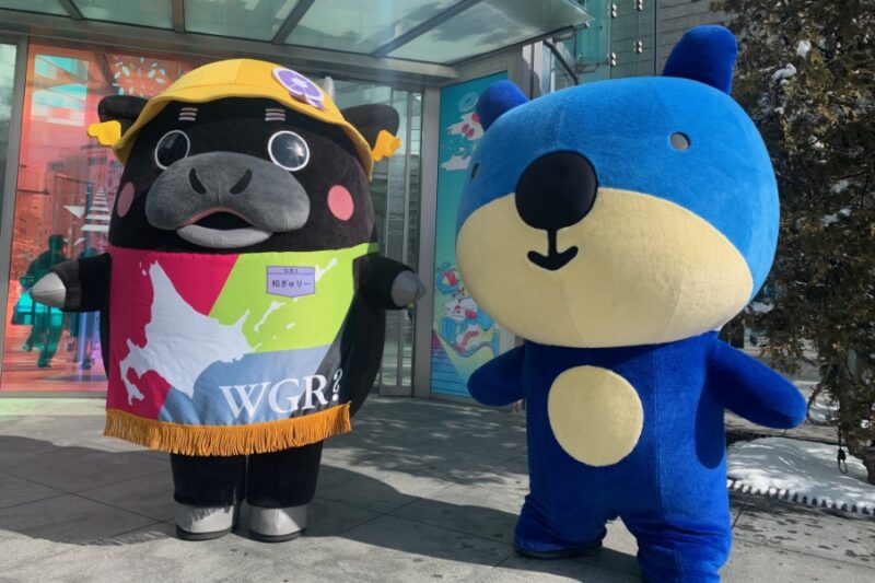 会場には北洋銀行公式キャラクターの「ほっくー」も駆けつけ、和ぎゅリーと一緒に宣伝を行ってくれました。